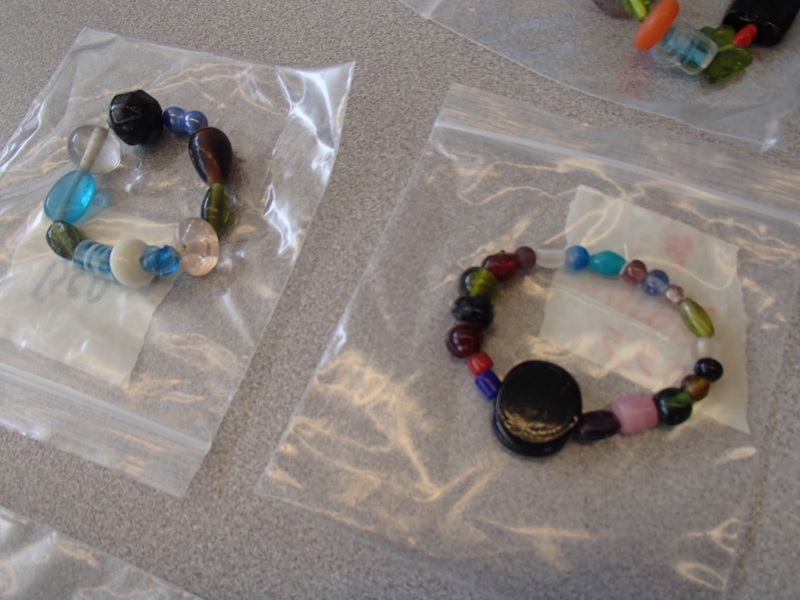 | Bucket of Glass Beads and Elastic string! Easy Peasy! |